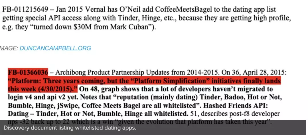Facebook将某些公司列入白名单,允许它们更广泛地访问用户数据,即使该公司在2014年和2015年关闭了其开发者平台之后也是如此。TechCrunch在12月也曾报道“目前尚不清楚用户是否对此表示同意,也不知道Facebook如何决定哪些公司应列入白名单或不列入白名单。”