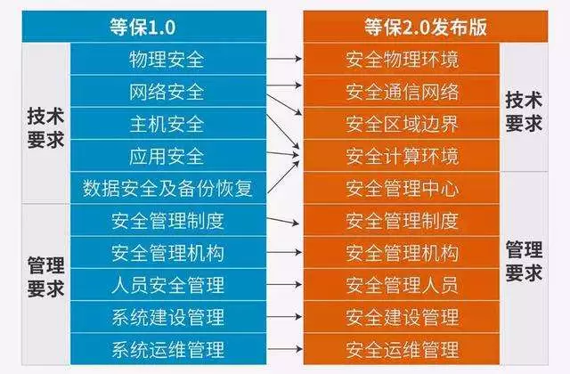 下图为等保1.0和等保2.0控制措施分类结果的变化:
