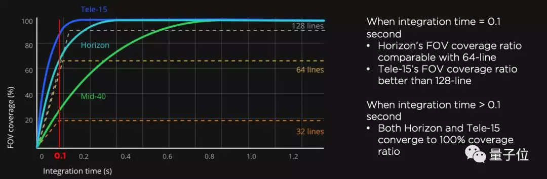 当积分时间为0.1秒时,Tele-15可以在15°圆形视场范围内扫描99.8%的区域,胜过目前市场上销售的128线机械激光雷达。