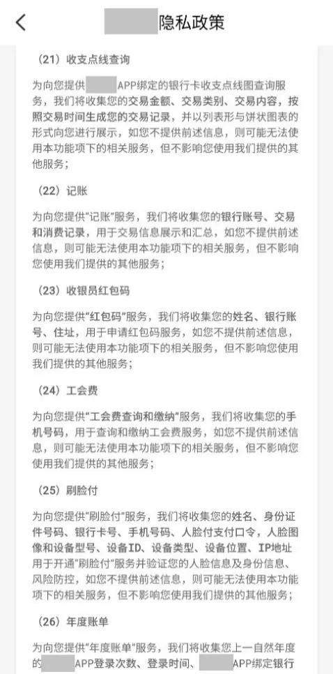 未明确告知收集使用个人信息的目的、方式和范围并在获得用户同意前,收集用户个人信息。在非服务所必需或无合理应用场景情况下,超范围或超频次收集个人信息。在应用登录时,将收集银行卡号、身份证号、人脸、指纹等敏感信息作为应用开启使用的前提条件或通过积分、奖励等方式诱导用户输入相关敏感信息等超范围收集问题突出。