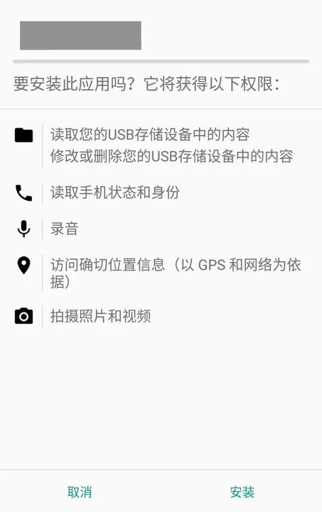 受系统特性的限制,当应用的targetSDKVersion版本低于23时,应用在安装时一次性获取全部申请权限。若用户不同意,则无法正常安装,如图17所示。