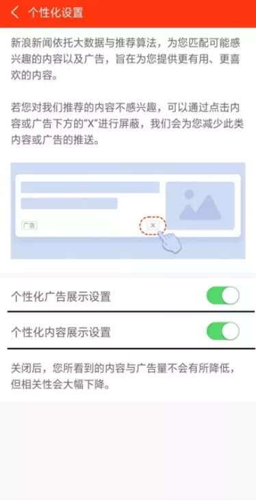 1. 个性化内容及广告告知简单易懂、清晰明了