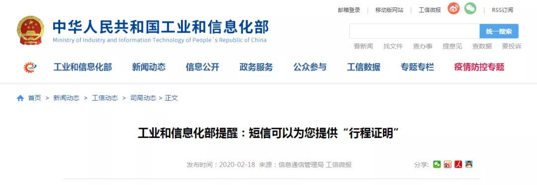 为支持复产复工,帮助返岗复工的用户证明自己近期所到访过的地区,协助用工单位、社区管理部门进行流动人员的行程查验,在工业和信息化部统一组织下,中国电信、中国移动、中国联通为全国手机用户免费提供本人到访地短信查询服务,已于2020年2月13日面向全国推广。用户可通过编写“CXMYD”发送至10001、10086或者10010并按运营商相应短信提示,实现到访地查询。