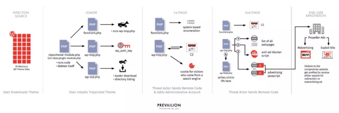 E安全2月21日讯,据外媒报道,根据网络安全公司Prevailion 的研究人员于近日发布的最新研究显示,WP-VCD犯罪团伙已通过在其恶意软件中集成反拦截脚本来进行黑客攻击,被木马化的WordPress通过广告传播恶意软件,并且已经破坏了超过20000台Web服务器。据了解,受感染的服务器遍布全球,而且超过五分之一的受感染实体是中小型企业。