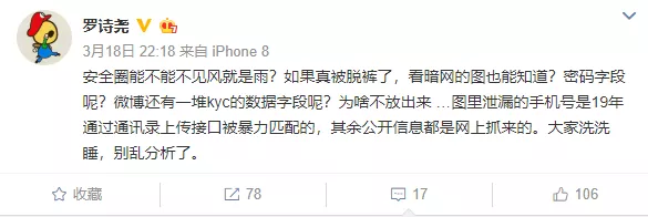 而罗诗尧回应,“泄漏的手机号是 19 年通过通讯录上传接口被暴力匹配的,其余公开信息都是网上抓来的。”