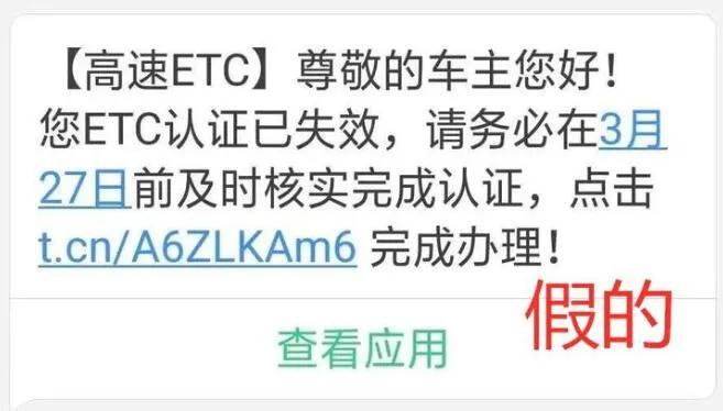原来这类以“ETC认证失效”、“办理到期”名义的诈骗短信最近不少市民都收到过,有的甚至还上当受骗了!
