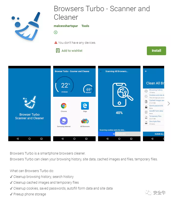 在Google Play上架的,伪装成浏览器清理工具的间谍软件