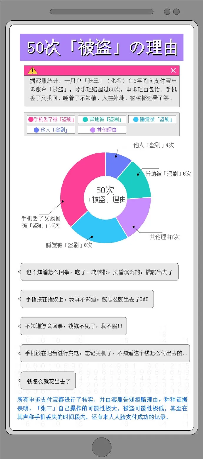 昨天,蚂蚁金服官方微博就透露称,有位用户2年编造了50多次支付宝被“盗刷”的理由,千奇百怪客服小姐姐都气乐了。