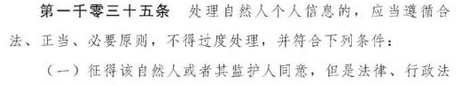 第1035条规定,处理自然人个人信息的,应当遵循合法、正当、必要原则,不得过度处理,并要征得自然人同意、公开处理信息的规则,还要明示处理信息的目的、方式和范围。
