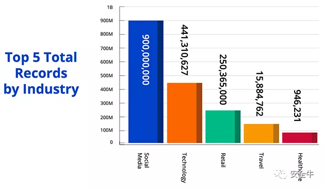 尽管医疗行业是最常被攻击的目标行业,但科技公司遭受泄露的记录数量最多,2019年科技行业泄露的记录超过13.7亿条,损失超过2500亿美元。