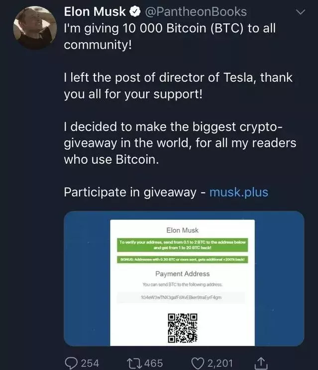 一般来说,黑客主要有下面几种作案手法,入侵后要么推销加密货币赠品骗局,要么直接要求粉丝向其发送数字货币,或者将账户名称更改为名人的高仿号来行骗。
