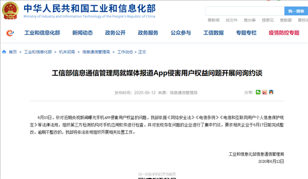 针对央视曝光APP偷窥用隐私一事,工信部依据《网络安全法》、《电信条例》、《电信和互联网用户个人信息保护规定》等法律法规,组织第三方检测机构对手机应用软件进行检查,并对发现存在问题的企业进行了集中约谈,要求相关企业于6月17日前完成整改,逾期不整改的,将依法依规组织开展相关处置工作。
