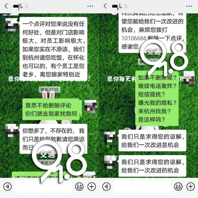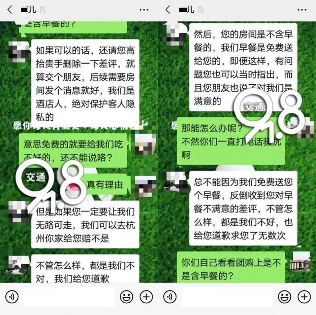 被告知不会删除差评后,酒店工作人员开始威胁这位女士,其表示:首先她写的不是事实(差评),其次她跟别人在这里开房,最后如果不取消差评,有可能会泄露她的一些隐私。