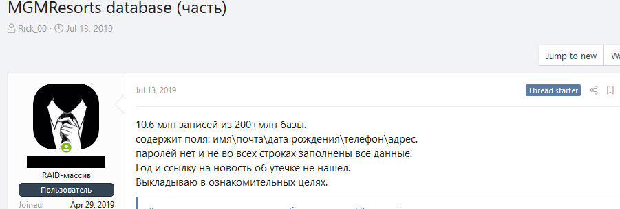 英特尔威胁公司KELA的研究主管伊琳娜·内斯特罗夫斯基(Irina Nesterovsky)今年2月告诉ZDNet,米高梅的数据至少从2019年7月开始就在私人黑客圈子里流传和出售。