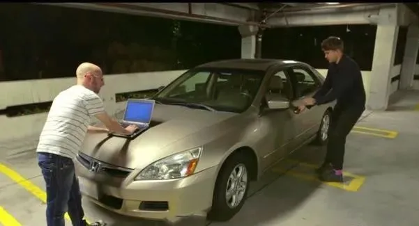 在加利福尼亚州格伦代尔市,安全专家(黑客高手)马斯特.苏纳尔和互联网专家夏维.艾瑞森在一个地下停车场进行黑客入侵控制汽车试验,艾瑞森亲自驾驶一辆经过第三方改装可以联网的汽车,马斯特操作一台笔记本电脑,现场操控汽车的电脑系统。