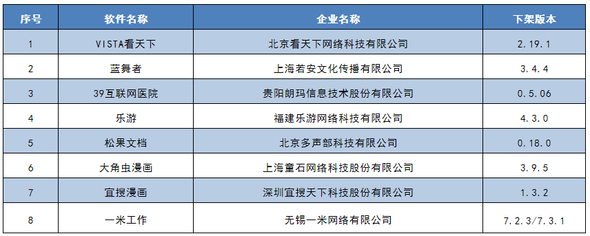 下架的应用软件名单