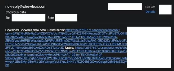 最近,黑客窃取了食品配送平台Chowbus的客户数据,并通过电子邮件通知受害者数据泄露。