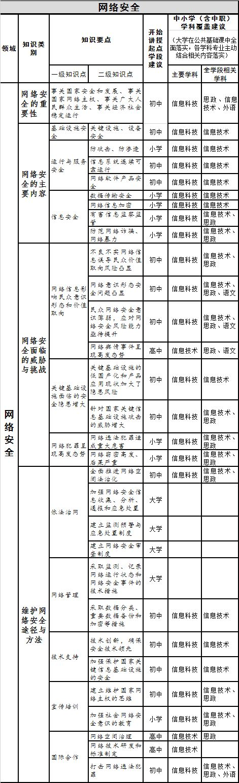 指导纲要附录《国家安全教育知识要点》中,网络安全领域具体内容详情如下: