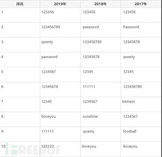 回顾前几年的弱密码榜单,可以发现其实变化不大,都是123456最为热门,剩余密码也都是这些数字的排列和延伸,或是英文密码“password”,英语为母语的人们偏好的密码。