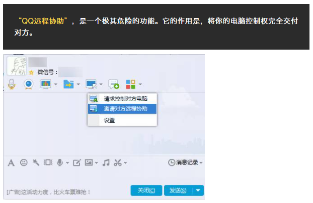 QQ与微信有着很多相似的社交功能,骗子们之所以看中了QQ,是因为它有两个微信所不具备的功能——远程控制和共享屏幕。