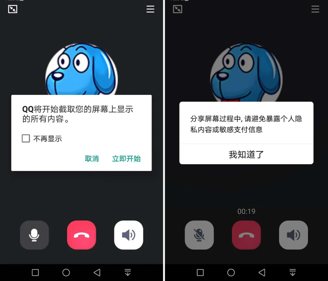 尽管QQ已经在“分享屏幕”的流程中加入了双层的风险提示。按理说,下图提示框内显示的文字所“暗示”内容已经很明显了,但却依然无法挽救那些疏忽大意的受害人。