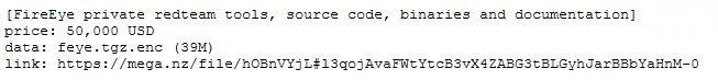 最后,还有 FireEye 私有的 Redteam 工具、源代码、二进制文件和文档也被打包出售,39M 的资料定价 5 万美元。