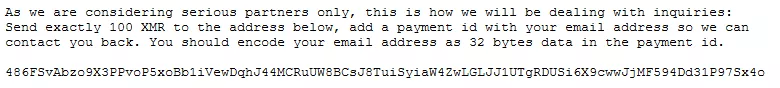 目前,SolarLeaks 网站进行了更新,其中包含一条新消息,他们的电子邮件已被关闭,想要查看出售资料样本的买家需将 100 XMR(约合 16000 美元)发送到他们提供的 Monero 地址。