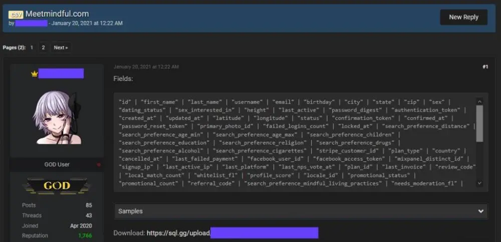 一位知名黑客近日攻击了美国相亲网站 MeetMindful,获取了用户信息数据库并在一个黑客论坛上公开,可以免费下载。
