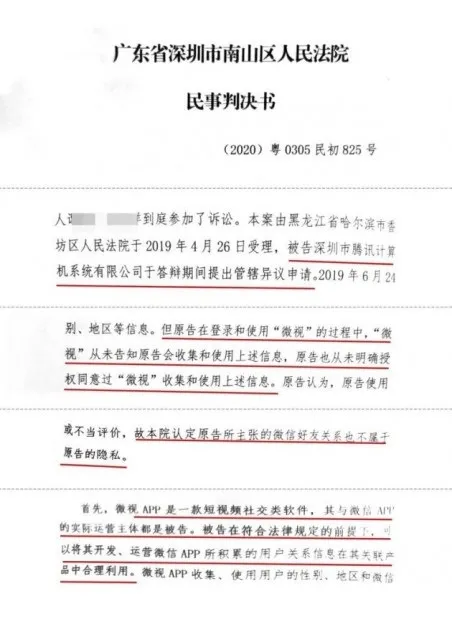用户起诉腾讯,深圳南山法院一审判决认定:微信好友关系不属于个人隐私