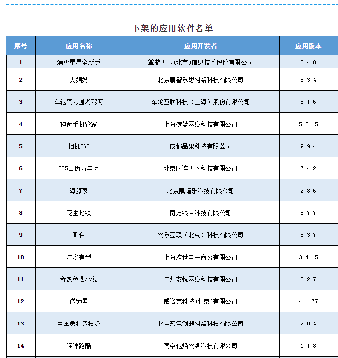 依据《网络安全法》和《移动智能终端应用软件预置和分发管理暂行规定》(工信部信管〔2016〕407号)等法律和规范性文件要求,工业和信息化部组织对上述37款APP进行下架。相关应用商店应在本通报发布后,立即组织对名单中应用软件进行下架处理。