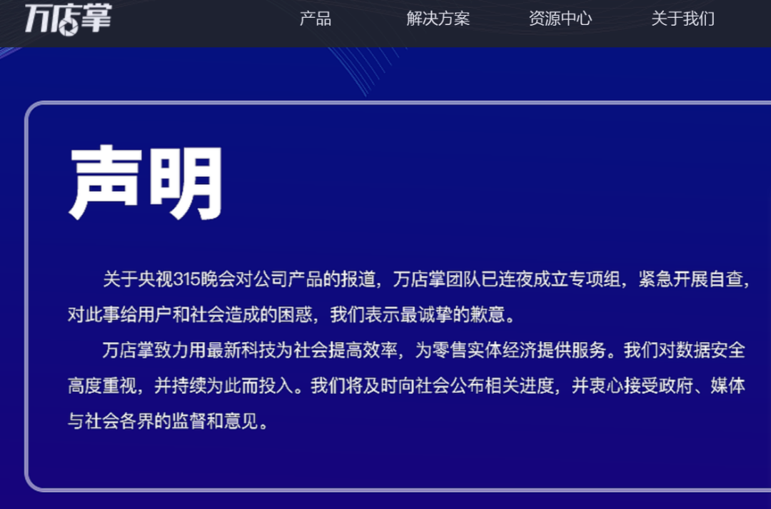 万店掌致歉:已连夜成立专项组,紧急开展自查。还表示对数据安全高度重视,并持续为此而投入。