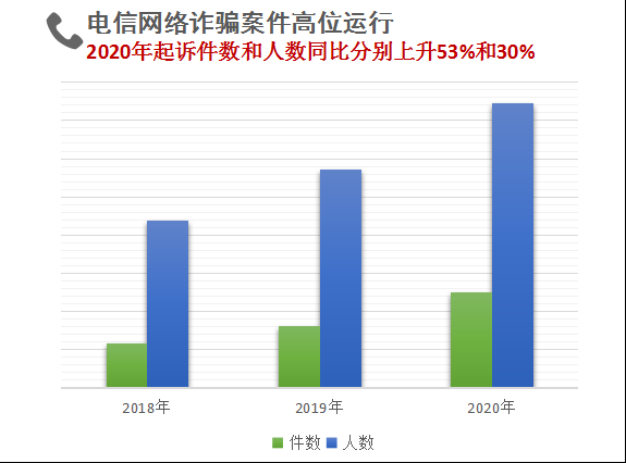当前,电信网络诈骗案件高位运行,网络赌博犯罪案件上升明显,网络犯罪黑灰产业生态圈逐步形成并发展。来自最高检统计数据显示,2020年,全国检察机关起诉涉嫌网络犯罪(含利用网络和利用电信实施的犯罪及其上下游关联犯罪)14.2万人,同比上升47.9%。