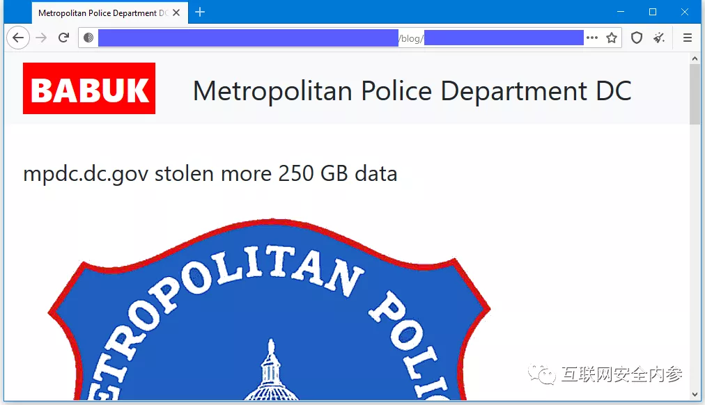 Babuk Locker团伙宣称,他们已经从特区警局的服务器上总计下载到超过250GB数据。