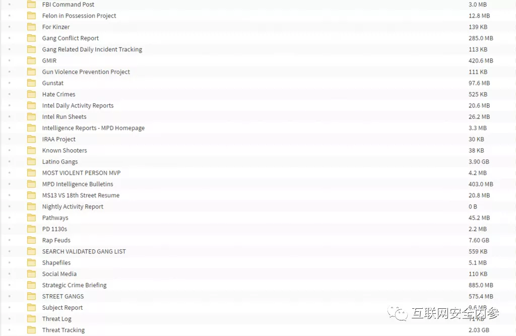 从截屏内容来看,该勒索软件团伙已经获得了访问调查报告、警官风纪记录、本地帮派档案、面部照片以及管理文件的权限。