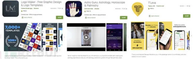 这一发现来自于对官方Google Play商店中23款安卓应用的研究,这些应用的下载量从1万到1000万不等,如Astro Guru、iFax、Logo Maker、Screen Recorder和T'Leva。