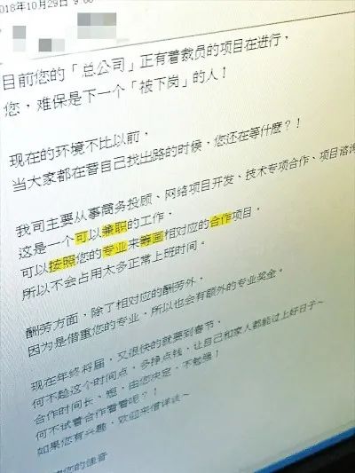 1、一封陌生的“兼职”邮件刘欣,博士文化程度,是平顶山某企业的高级工程师。为了提升个人发展空间、寻求更好的工作机会,他在多家招聘网站上投放了个人简历。