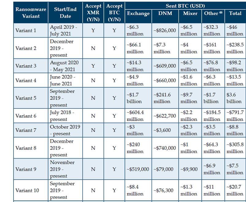 据了解,FinCEN分析了2011年1月1日至2021年6月30日期间提交的2,184份SAR(可疑活动报告),确定177个用于与勒索软件相关的支付CVC(可兑换虚拟货币)钱包地址,由此最终确定大约52亿美元的BTC(比特币)交易可能与勒索软件支付相关。