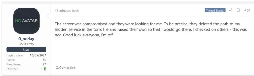 论坛帖子显示REvil服务器已被入侵