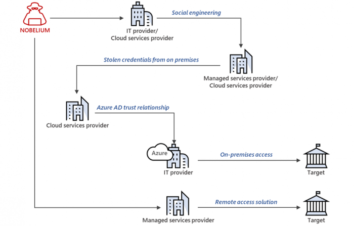 这次活动与Nobelium的传统做法相同,即通过攻破服务提供商来破坏一个重要的目标名单。就像以前的攻击一样,俄罗斯国家黑客使用了一个多样化和不断变化的工具包,包括一长串工具和战术,从恶意软件、密码喷剂、令牌盗窃到API滥用和鱼叉式网络钓鱼。这些新攻击的主要目标是为其客户部署和管理云服务和类似技术的经销商和技术服务提供商。