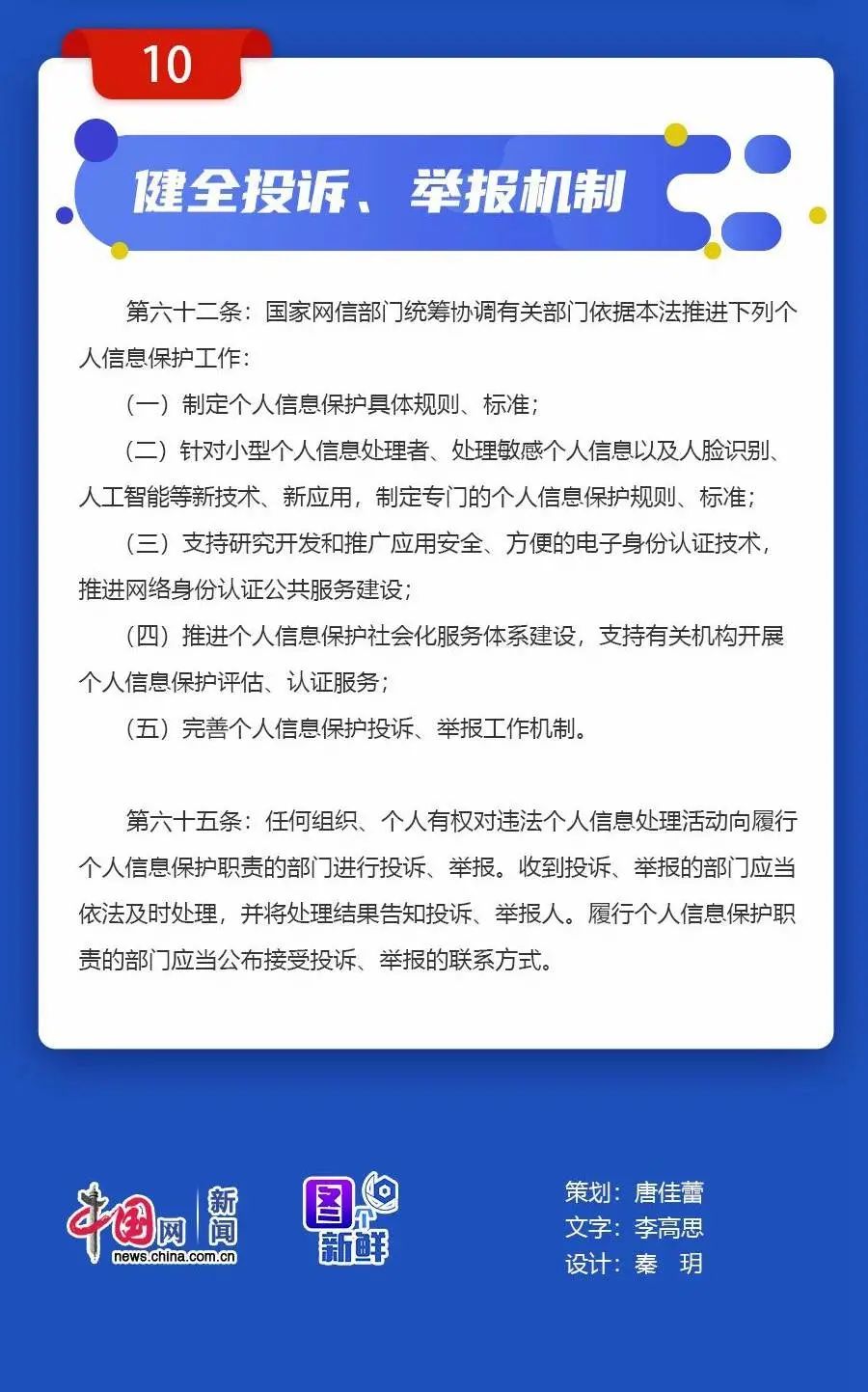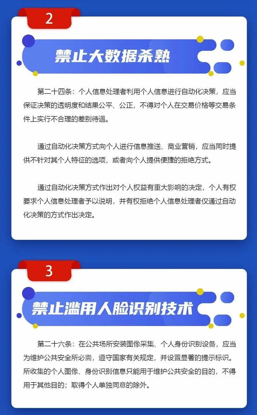 法律明确不得过度收集个人信息、大数据杀熟,对人脸信息等敏感个人信息的处理作出规制,完善个人信息保护投诉、举报工作机制等,充分回应了社会关切,为破解个人信息保护中的热点难点问题提供了强有力的法律保障。