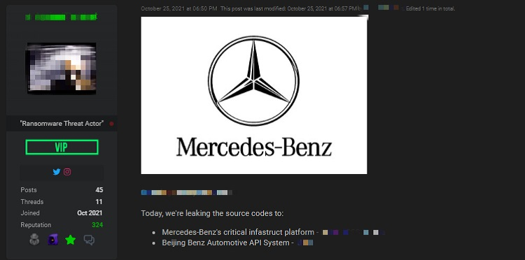 泄密者称,这些数据包括梅赛德斯-奔驰的“关键基础设施”平台和北京奔驰汽车API系统数据。梅赛德斯-奔驰是德国制造商戴姆勒公司(Daimler AG)旗下的汽车品牌。