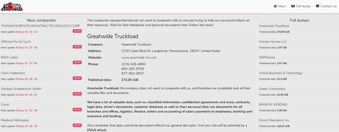 为了谋取更多的利益,Avaddon组织会与其他组织合作,比如臭名昭著的Phorpiex僵尸组织。该模式为典型的AaaS(Access as a Service,访问即服务),即Avaddon勒索团伙通过其他黑产团伙提供肉鸡访问权限来扩大勒索面,从而谋取更多的利益。后来,Avaddon勒索组织又开发出了使用窃取数据威胁受害者缴纳赎金的获利模式。据统计,已有多个目标被Avaddon勒索组织在暗网上公开隐私文件,比如保险信息和项目档案等。