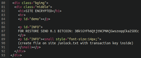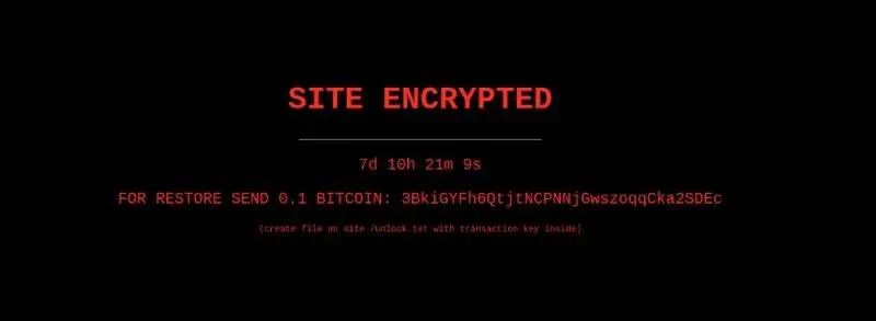 发送0.1比特币以恢复加密的站点:[地址已编辑](在站点/unlock.txt上创建包含交易密钥的文件)