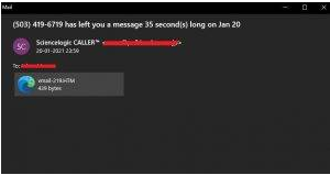 网络钓鱼电子邮件伪装成来自受害人统一通信工具的自动电子邮件,该工具说他们具有语音邮件附件。例如,一封电子邮件告诉用户“(503)***-6719在1月20日给您留下了35秒长的消息”,以及一个名为“ vmail-219.HTM”的单独附件。另一个电子邮件告诉收件人“复查安全文件”。