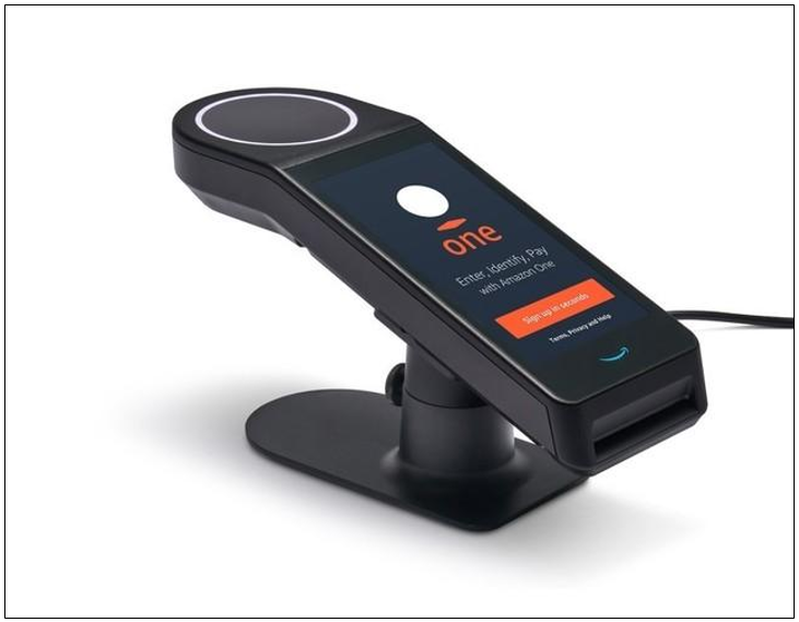 此前,亚马逊也曾发布一款刷掌支付设备,可能更像该款专利。
