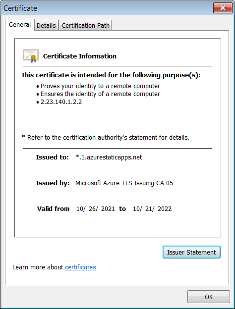 因为证书是由微软Azure TLS签发CA 05给*.1.azurestaticapps.net,所以受害者会认为钓鱼页面是微软官方的登录页面。