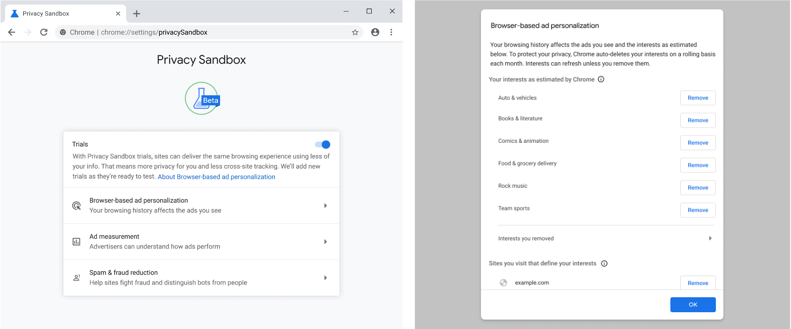 此外,现在还将开始测试更新的隐私沙盒设置和控制,这将允许用户查看和管理与他们利益相关的设置,或完全关闭试验。