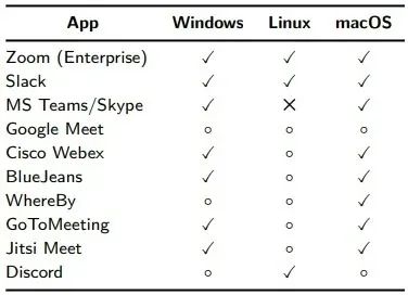 当前在线视频会议应用主要基于iOS、安卓、Windows和Mac操作系统。研究人员对选定APP进行了运行时二进制文件分析以确定每个APP收集了哪一类数据,以及数据是否构成隐私威胁。测试的APP包括Zoom、Slack、微软 Teams/Skype、Google Meet、Cisco Webex、BlueJeans、WhereBy、GoToMeeting、Jitsi Meet和Discord。