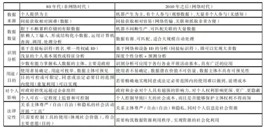 在大数据分析背景下,任何数据都具有识别个人的能力,而且在很多情形下,很多身份性数据也可以分析个性特征,而个性特征方面的数据也可以分析身份。这样,随着分析技术的进步具有识别性的数据就越来越多、越来越广。