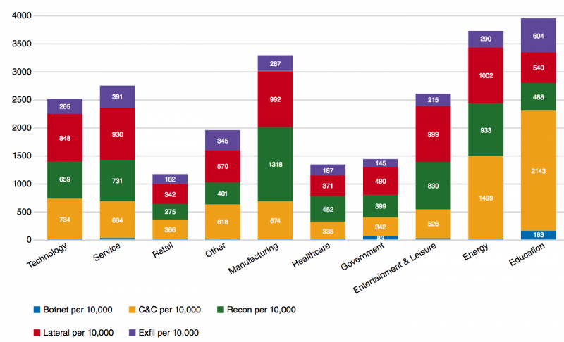 Vectra的2018年行业聚焦报告显示,制造业网络内部监视和横向移动攻击活动的发生率高于正常水平。Vectra是一家网络安全公司,专注于研究僵尸网络,指挥和控制(C&C)交通,数据泄漏,侦察和横向移动攻击。